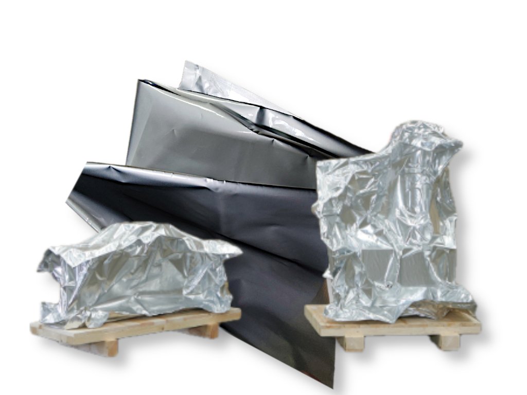 Vak je vyroben z třívrstvého bariérového laminátu PET / hliníková fólie / PE, který poskytuje velmi nízkou propustnost pro vodní páru i kyslík. Díky tomu je tento antikorozní exportní obal vhodný zejména pro balení strojních dílů, elektroniky, kovových komponentů nebo technologických zařízení určených pro náročnou přepravu.