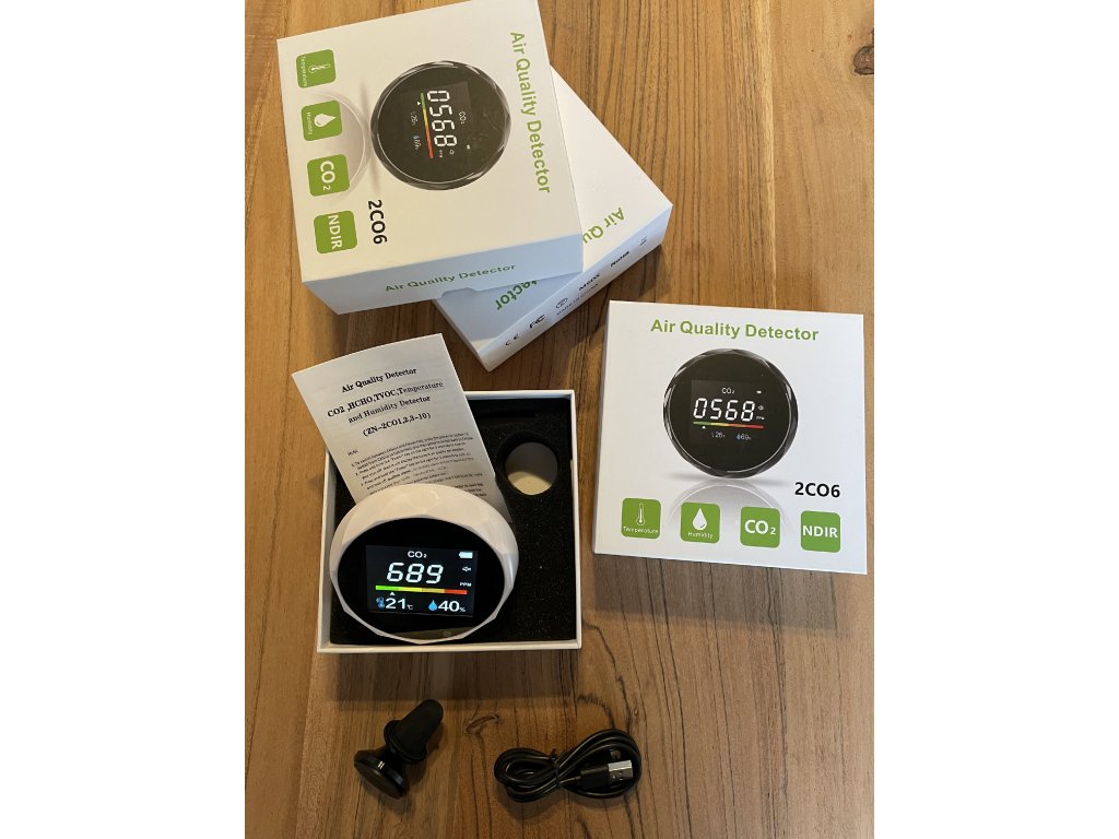 Detektor oxidu uhličitého CO2, s teploměrem a vlhkoměrem má velmi jednoduché ovládání, infračervený senzor (NDIR) se kalibruje automatické. Standardně je trvalé USB napájení, nebo alternativně se dá použít s vestavěnou lithiovou baterii. Návod v češtině je součást balení.