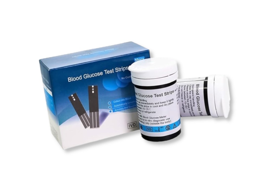 - 50 ks testovacích proužků s GOD enzymem (2 balení po 25 ks)