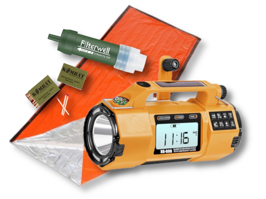 Tato pečlivě sestavená sada čtyř ultralehkých a spolehlivých produktů vám poskytne jistotu při výpravách do přírody i v krizových situacích. Obsahuje nejnovější model nouzového rádia s digitálním displejem, výkonnou svítilnou a výměnnými Li-ion bateriemi, vodní filtr s vysokou účinností, nouzový spacák s píšťalkou a zápalky do deště. Výhodná cena oproti nákupu samostatných produktů dělá ze sady skvělý dárek i praktickou výbavu na túry či do auta.