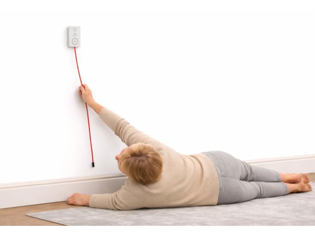 Součástí jednotky je nouzová tahací šňůrka (pull-rope), jejímž zatažením lze okamžitě zahájit tísňové volání. To je praktické zejména při umístění jednotky u postele nebo nad lůžkem.
