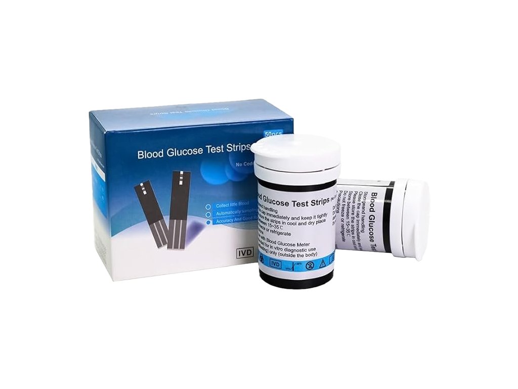 • 50 ks testovacích proužků s GOD enzymem (2 balení po 25 ks).