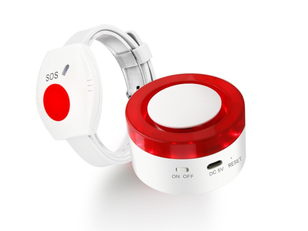 Tísňový smart náramek funguje bezdrátově. Centrální jednotka je trvale připojena na WiFi 2.4 GHz a napájena přes micro USB a obsahuje také baterie pro provoz v případě výpadku elektřiny. Náramek je vybaven velkým červeným gumovým tlačítkem, LED kontrolkou a je odolný vůči vodě.