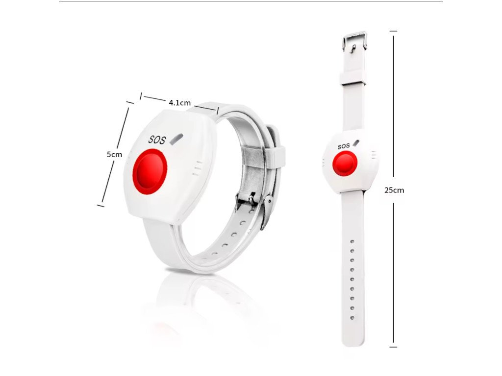 Tísňový náramek funguje bezdrátově. Centrální jednotka na frekvenci 433 MHz (není zahrnuta v ceně) a trvale připojena k WiFi 2,4 GHz a je napájena přes micro USB a obsahuje také baterie pro provoz v případě výpadku elektřiny. Náramek je vybaven velkým červeným gumovým tlačítkem, LED kontrolkou a je odolný vůči vodě.